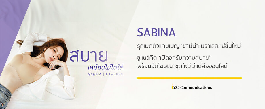 ร่วมสัมผัสประสบการณ์ “เปิดอกรับความสบาย” ได้แล้วที่ซาบีน่า ช็อป รวมถึงเคาน์เตอร์ซาบีน่า ในห้างสรรพสินค้าชั้นนำทั่วประเทศ และ Sabina Online : www.sabina.co.th หรือสอบถามรายละเอียดเพิ่มเติมได้ผ่านทาง Facebook : SabinaThailand, Line@ : @SabinaThailand และ Instagram : Sabina_ig